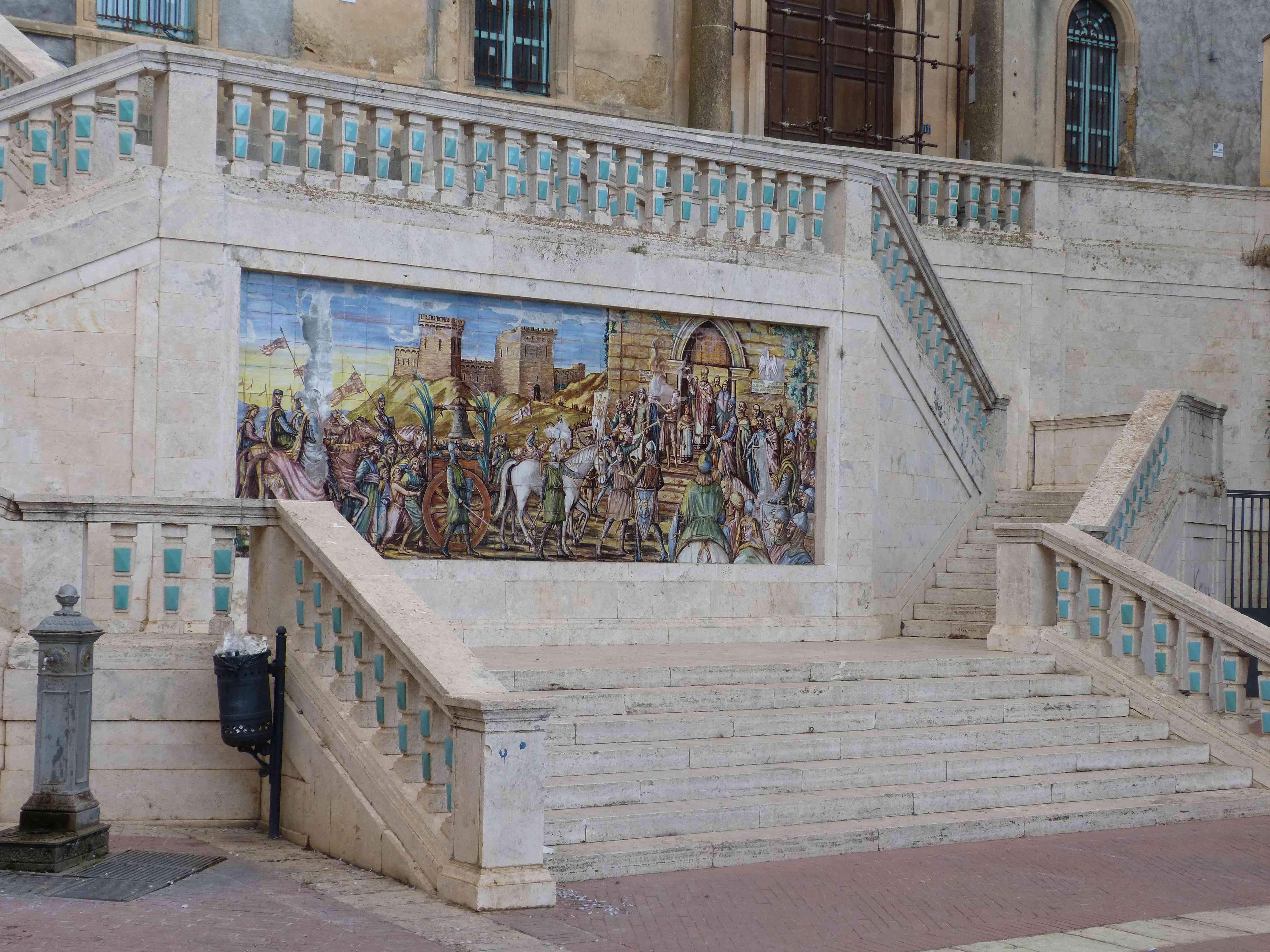 • Caltagirone/ Bienvenue dans la capitale de la céramique. Il ne faut en aucun cas manquer le bel escalier de 142 marches « La Scalimata de Santa Maria del Monte », décoré de céramique. Lors de notre visite, il y avait des escrimeurs. Original !
