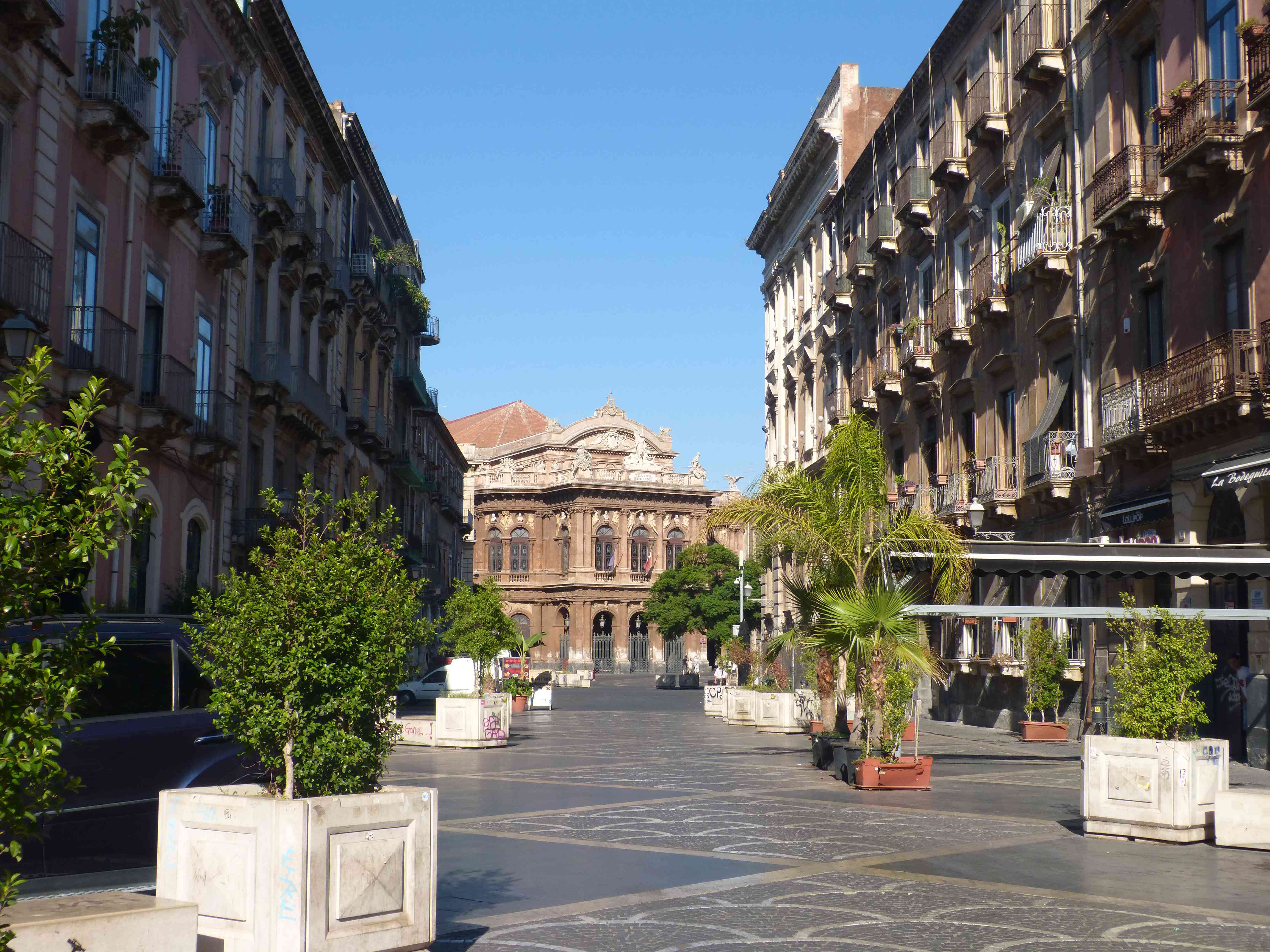 • Catane/ Découvrir la « Piazza del Duomo » et sa fontaine de l’éléphant appelée « U Liotru », le Palazzo Biscari, la Via Etnea entièrement recouverte de dalles taillées dans la lave et le joli théâtre « Massimo Bellini ». De nombreux parcours de la ville sont disponibles à l’office de tourisme (voir aussi le <plan de Catane>).